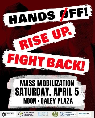 All around the country, folk are rising up on April 5 to say ‘Hands Off’ of Medicaid and Social Security, Public Lands and Unions, Immigrants, Trans and LGBTQ+ Rights, Our Courts and Our Bodies, Clean Energy and Voting Rights!