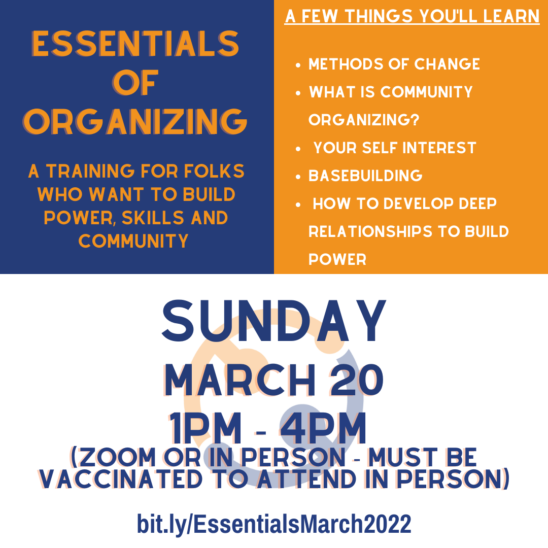 Friends, I am sharing with you this opportunity that ONE Northside, our Community Partner, is offering to teach the Essentials of Organizing. The event will be on Sunday, March 20, 1-4 p.m. via zoom or in person at Unity Lutheran Church, 1212 W. Balmoral (if you are vaccinated and will wear a mask for the duration.) If you are interested, please register here: bit.ly/EssentialsMarch2022